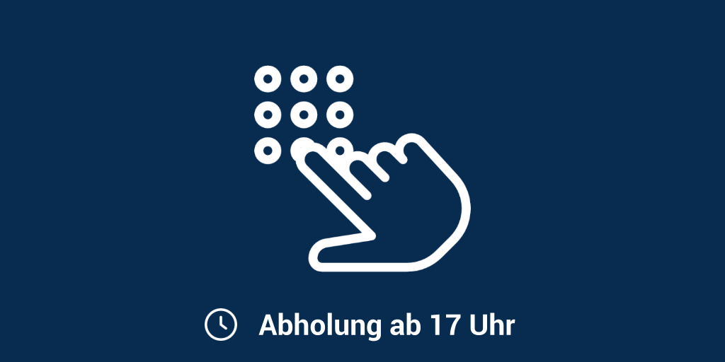Bei einer Bestellung von Montag bis Freitag bis 14 Uhr, steht die Ware am selben Tag ab 17 Uhr zur Abholung in der Abholstation bereit.