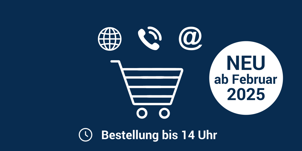 Bestellen Sie Montag bis Freitag bis 14 Uhr. Ihre Ware ist am Bestelltag ab 17 Uhr in der Abholstation verfügbar.